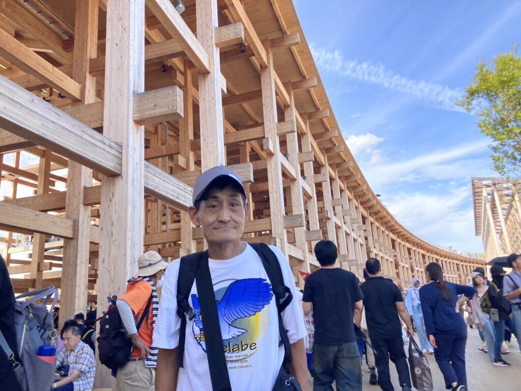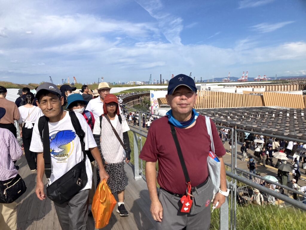 障がい者の事業所で働くUさんとFさん。かねてから念願であった関西万博に行ってきました。どこも人でいっぱいでしたが、「未来の都市」に入れました。大屋根リングの大きさにビックリ! さわやかな風が吹いて暑くもなく、しっかりと楽しんできました!