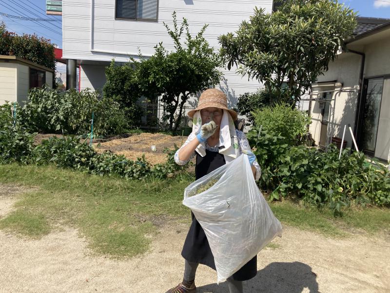 ご近所のお米屋さんで朝早くついた草もちを持って来られ、みなさんに振るまわれたYさん。リーダーの大江理事長が抹茶をたてて、みなさんにふるまわれました。ヨモギの香りがして、美味しい餡子(あんこ)が包まれた草もちと抹茶で癒(いや)されました。