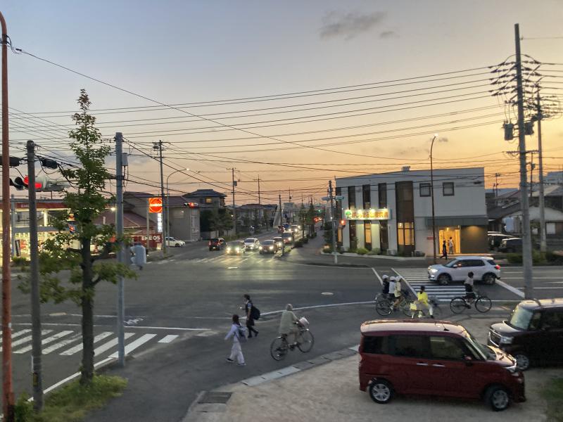 早いもので10月に入りました。日の入りがさらに早くなってきました。 18:01 西の空が茜色(あかねいろ)に染まっていました。