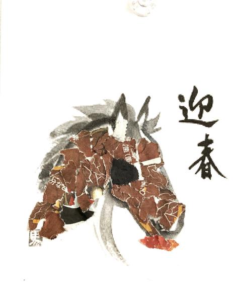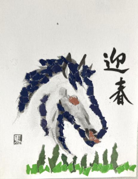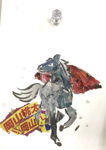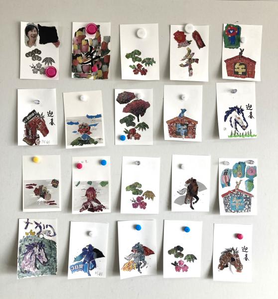 来年の干支(えと)は「午(うま・馬)」! 新聞紙の広告を小さくちぎって年賀状をつくりました。みなさんの力作をご覧ください!(^^)!