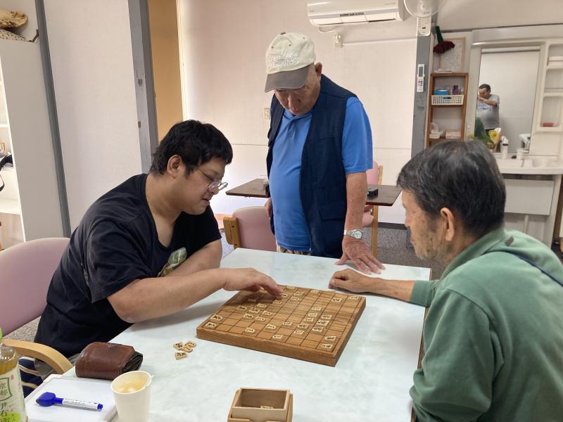 5月2日の第1回将棋大会がとても好評だったため、第2回目を実施しました。参加者は前回と同じ男性8名。総当たり戦の白熱した試合が展開されました。優勝者は前回と同じ、南区浦安本町のSさんが2連覇を成し遂げました。
