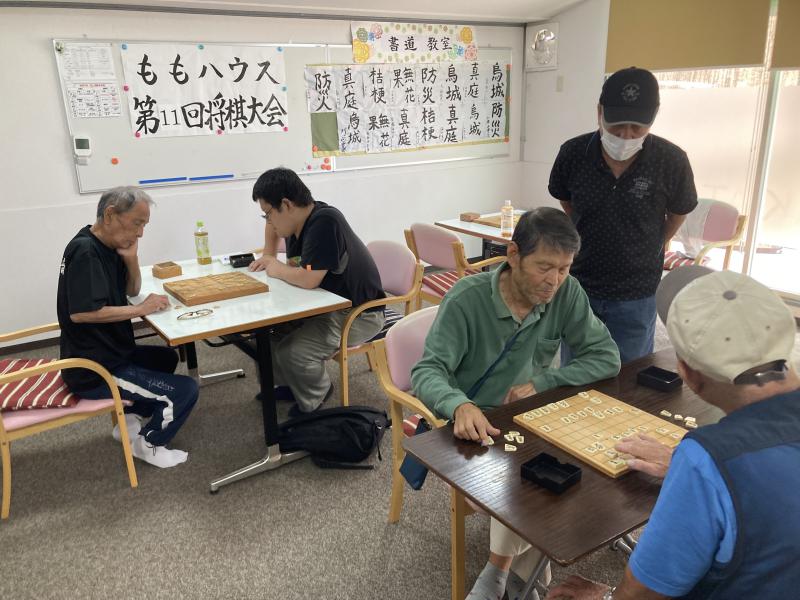 ももハウスの将棋大会は第10回を迎えました。今回は初めて参加した方が2人。6人の総当たり戦で熱戦が繰り広げられました。