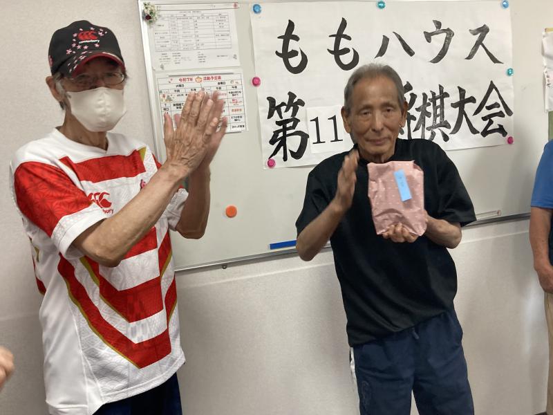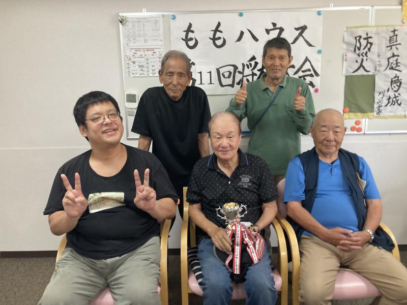 5月2日、「ももハウス」が始まって初めての将棋大会が開かれました。参加者は男性8名。優勝をめざして皆さん頑張りました。第1回大会の優勝者は南区浦安本町のSさんが優勝トロフィーを手にしました!