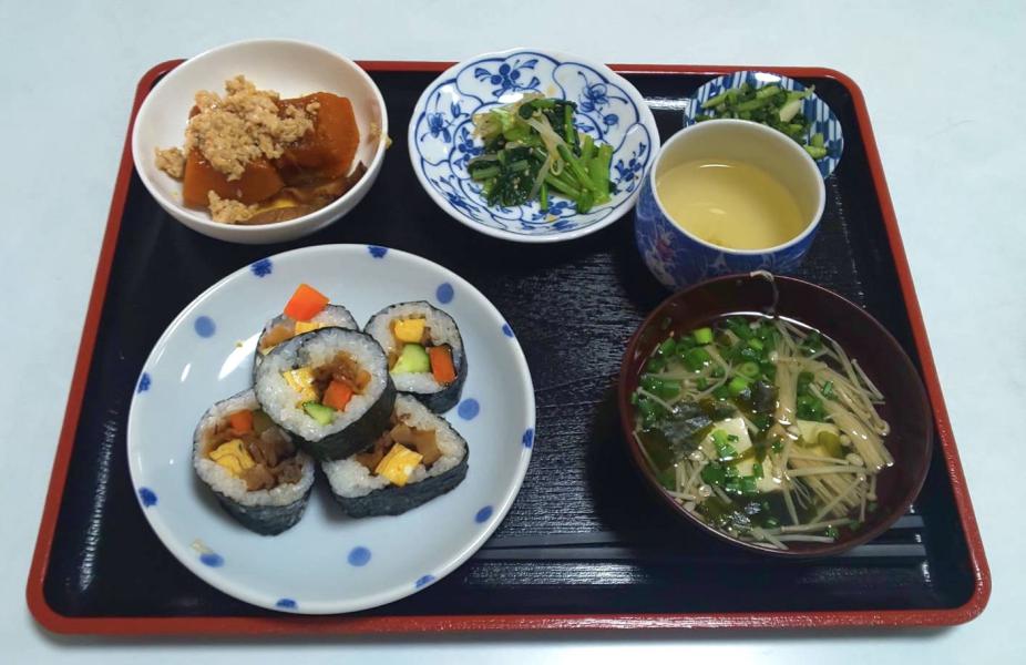 お昼ご飯の「巻きずし」をみなさんで作りました。これまで巻きずしを作った経験がない方もおられて、具がはしによったり、巻くときに力を入れすぎて固くまいたり・・・。 しかし、最終的にはとっても美味しい「巻きずし」ができました !(^^)!