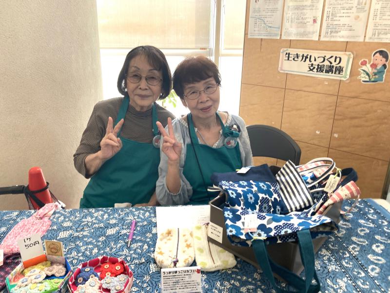 数年前より「エムエム薬局大元店」(北区大元)のご厚意により手芸班で作成した品物の販売をお願いしています。薬局の窓口の方にお話を伺いました。
