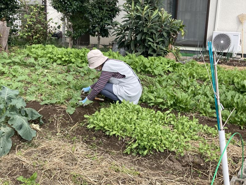 「ももハウス」の畑には冬野菜が日に日に大きく成長しています。水菜、小松菜、大根、ほうれん草、にんじん、ブロッコリーなど。採れた野菜は、「ももハウス」のお昼のご飯などで使っています。 秋晴れの日、畑の草抜きに来てくださった「縁の下の力もち」さんがいました! とても感謝なことです!