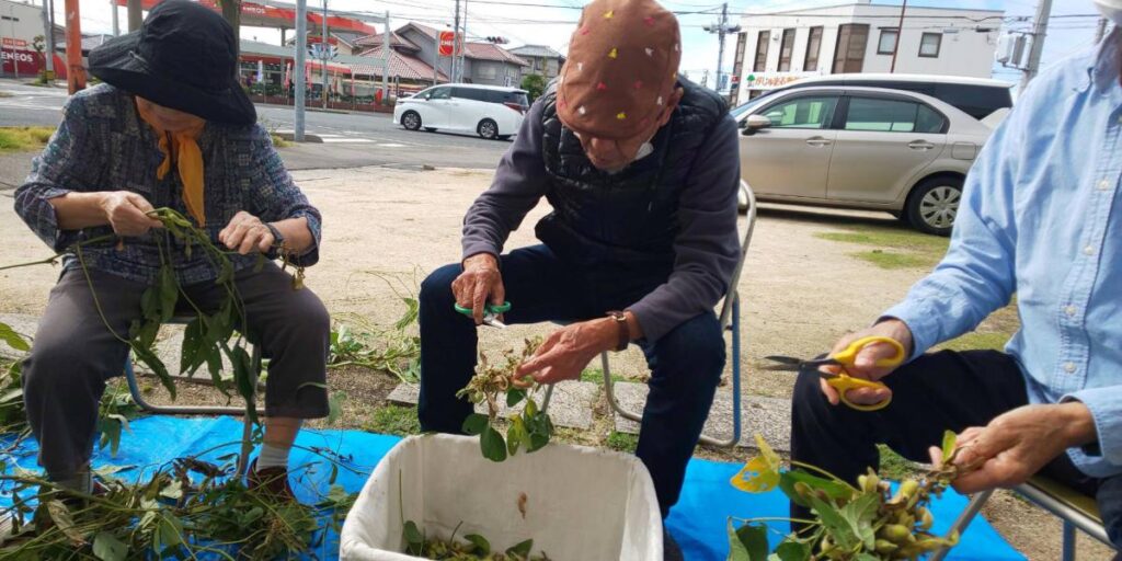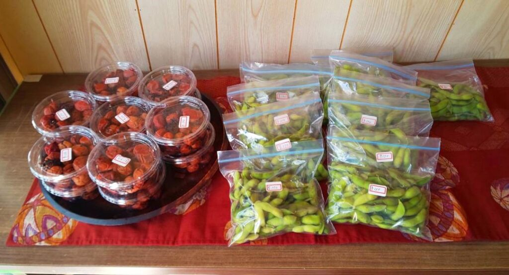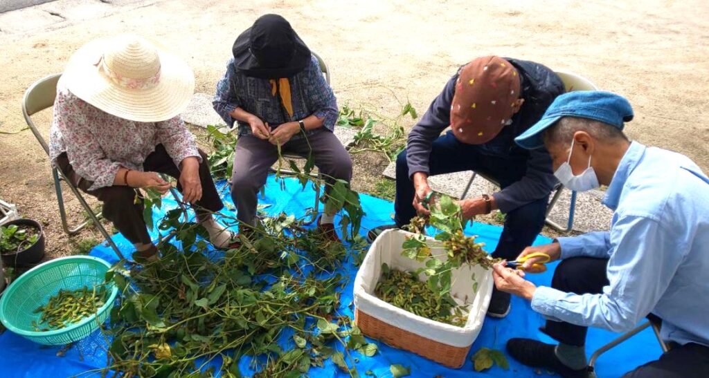 畑の「枝豆(えだまめ)」を採って、「活動展」で販売する準備をしました。1袋¥150‐があっという間に売れて完売!