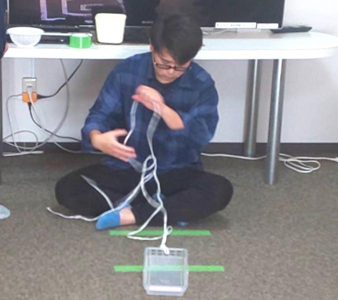 テニスボールを使って得点を争う玉入れゲームをしました。バウンドを利用して入れる方もいました!