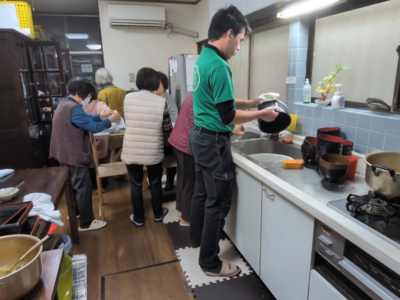 早いもので今年も半年が過ぎました。 後半6ヶ月の最初の日は、ジェスチャーゲームで和やかに伝え合いました(1枚目)。昼食後の食器洗い、食器拭きは分担して行っています(2枚目)。